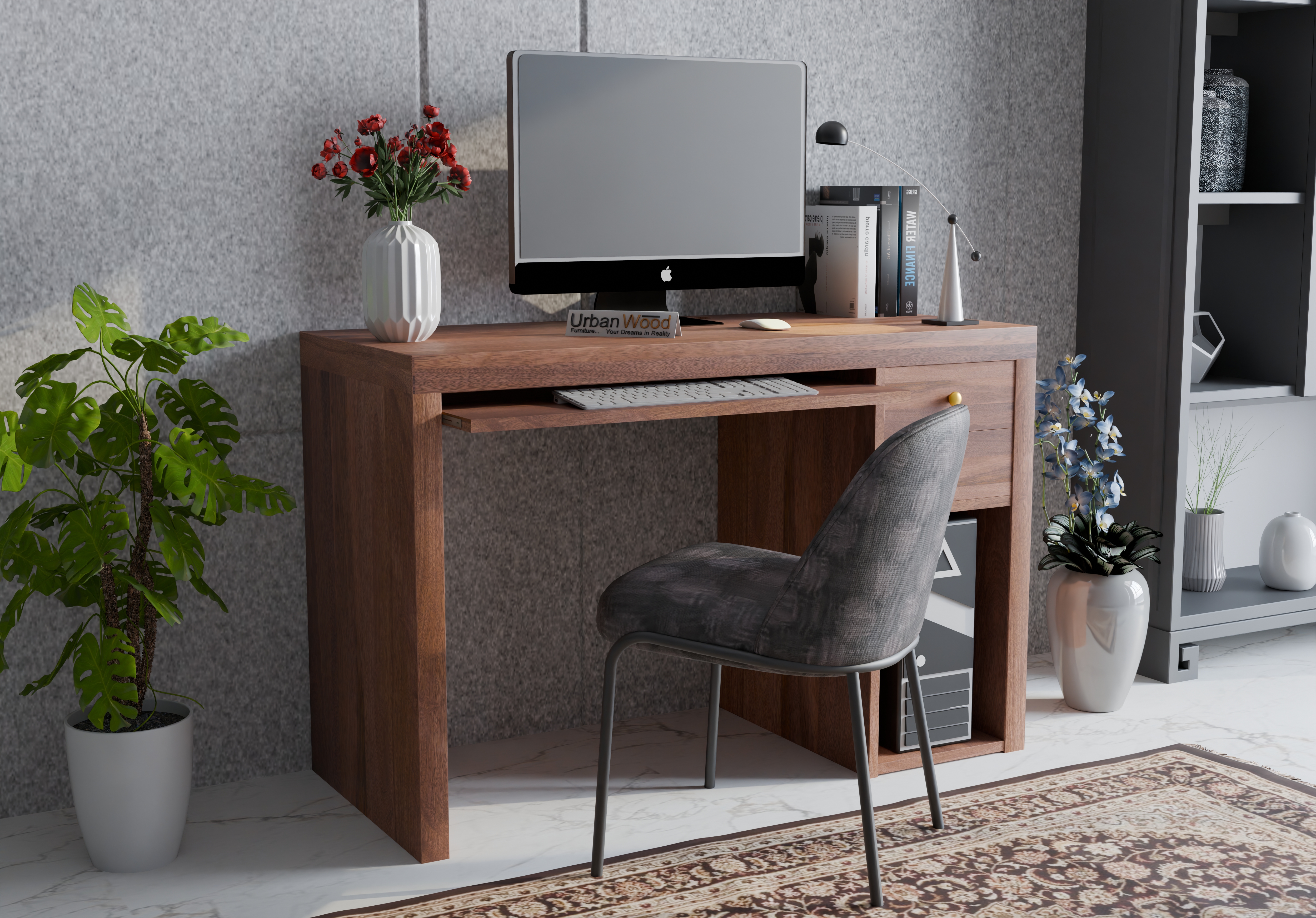 Compact yet practical for a clean and shipshape office aesthetic. Opt for wall shelves above your computer table to display plants, books, or decorative pieces. Use vertical storage units, tall and narrow cabinets that occupy minimal floor space and offer maximum utility. Drawer organizers, cable clips, and small baskets help you manage tiny essentials that otherwise go missing when you need them most.